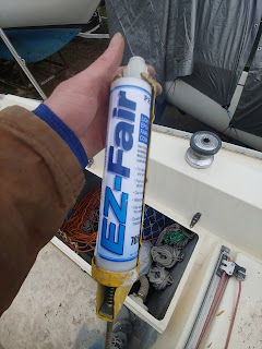 One other new product I tried out this year is the Pettit EZ-Fair. I have been using West System for years and really like their new products in calking tubes. They don't put their fairing compound in tubes yet and I saw this Pettit product. With all the filling I've been doing I thought I might give it a try. It is for sure a good product. It squeezes out nicely and is easy to mix and use. This is super nice because you don't end up wasting a lot of product. The downside is it is a lot harder to sand than the West System with 410 mixed into it. I can see using this again on small projects but anything that would require a fine finish with multiple coats I would for sure stick to the West System. West is easier to sand and I feel you can get better results especially and you get down into the higher grit sandpapers.